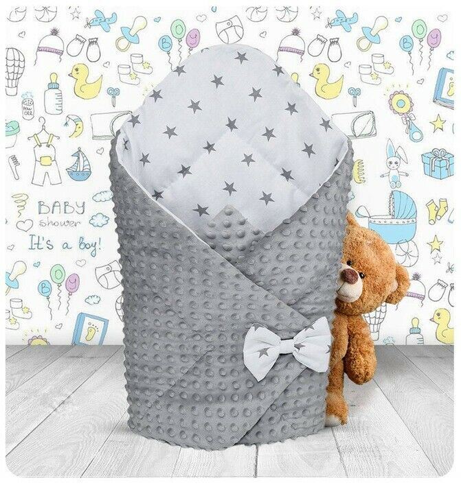 Baby Swaddle Wrap Newborn Dimple Cotton Infant Bedding Grey/ Small Stars On White